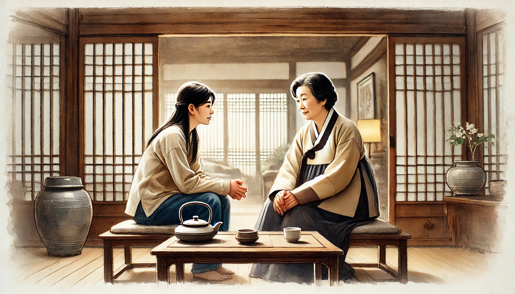 • 세대 차이 (Generation Gap): 고부 갈등은 세대 차이에서 비롯되는 가치관, 생활 방식, 의사소통 방식의 차이에서 흔히 발생합니다. 전통적인 가치관을 중시하는 시어머니와 개인의 독립성과 평등을 중시하는 며느리 사이의 가치관 충돌은 필연적으로 갈등을 야기할 수 있습니다. 또한, 순자 세대는 감정 표현에 서툴고 직접적인 의사소통보다는 간접적인 표현을 선호하는 경향이 있는 반면, 지혜 세대는 감정 표현에 솔직하고 직접적인 의사소통을 선호하여 오해가 발생하기 쉽습니다.