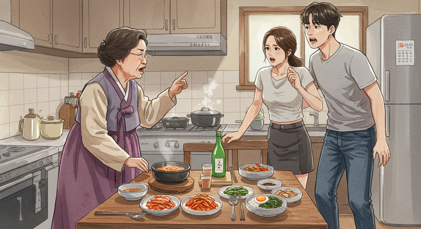 “아니, 며느리가 아침밥을 빵으로 때우는 집이 어디 있어? 밥솥에 밥 짓는 게 그렇게 힘든가?”