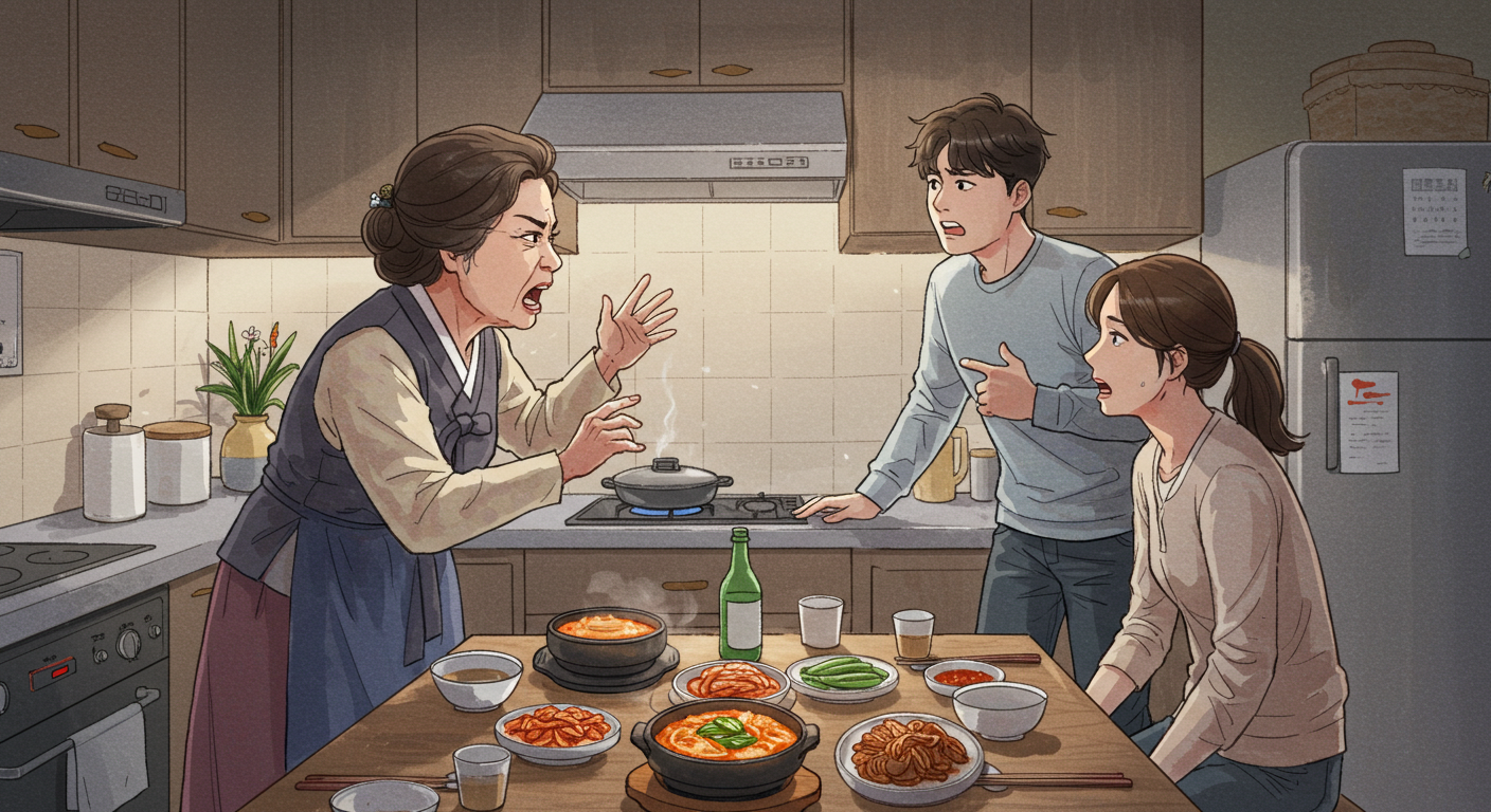 “아니, 며느리가 아침밥을 빵으로 때우는 집이 어디 있어? 밥솥에 밥 짓는 게 그렇게 힘든가?”