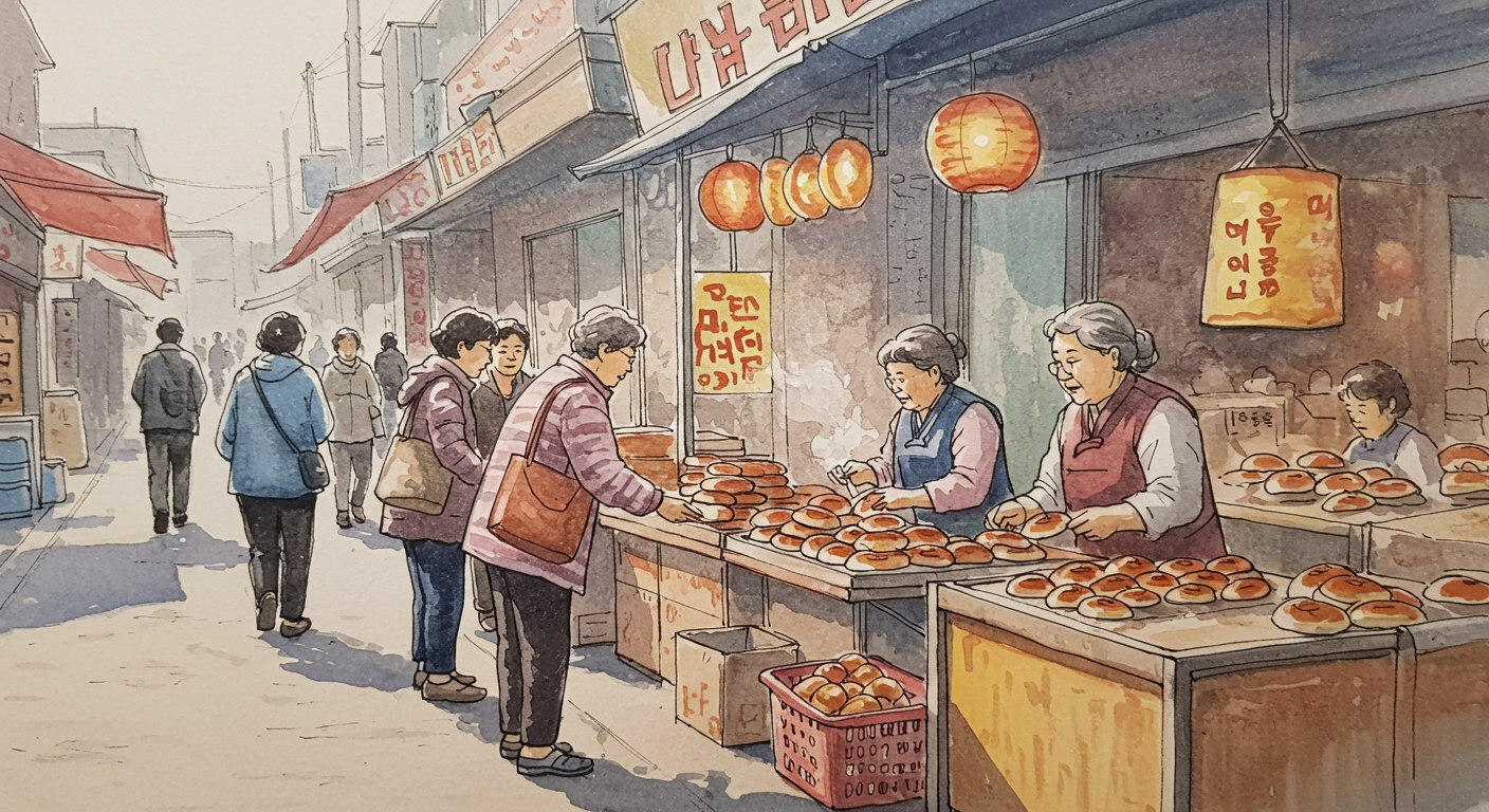 70대 후반의 김복순 할머니는 뽀얀 김이 피어오르는 화덕 앞에서 분주히 움직였다. 주름진 손은 쉴 새 없이 밀가루 반죽을 주무르고, 달콤한 팥 앙금을 듬뿍 넣어 동글납작한 빵 모양을 빚어냈다.