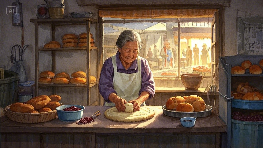 할머니의 빵집은 시장 골목길 가장 끝자락에 자리 잡고 있었다. 낡은 나무 간판은 비바람에 색이 바랬지만, ‘행복 빵집’이라는 정겨운 글씨는 여전히 따뜻하게 빛났다. 할머니가 매일 새벽 굽는 단팥빵 냄새는 시장 골목길을 가득 채우며 하루의 시작을 알리는 향긋한 자명종과 같았다.