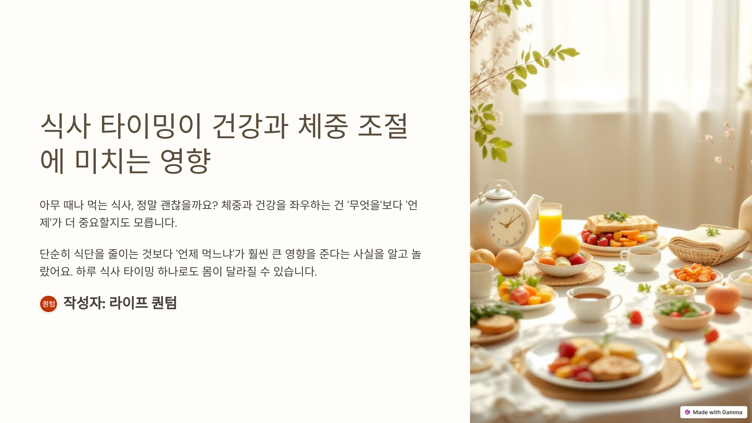 아무 때나 먹는 식사, 정말 괜찮을까요? 체중과 건강을 좌우하는 건 ‘무엇을’보다 ‘언제’가 더 중요할지도 모릅니다.