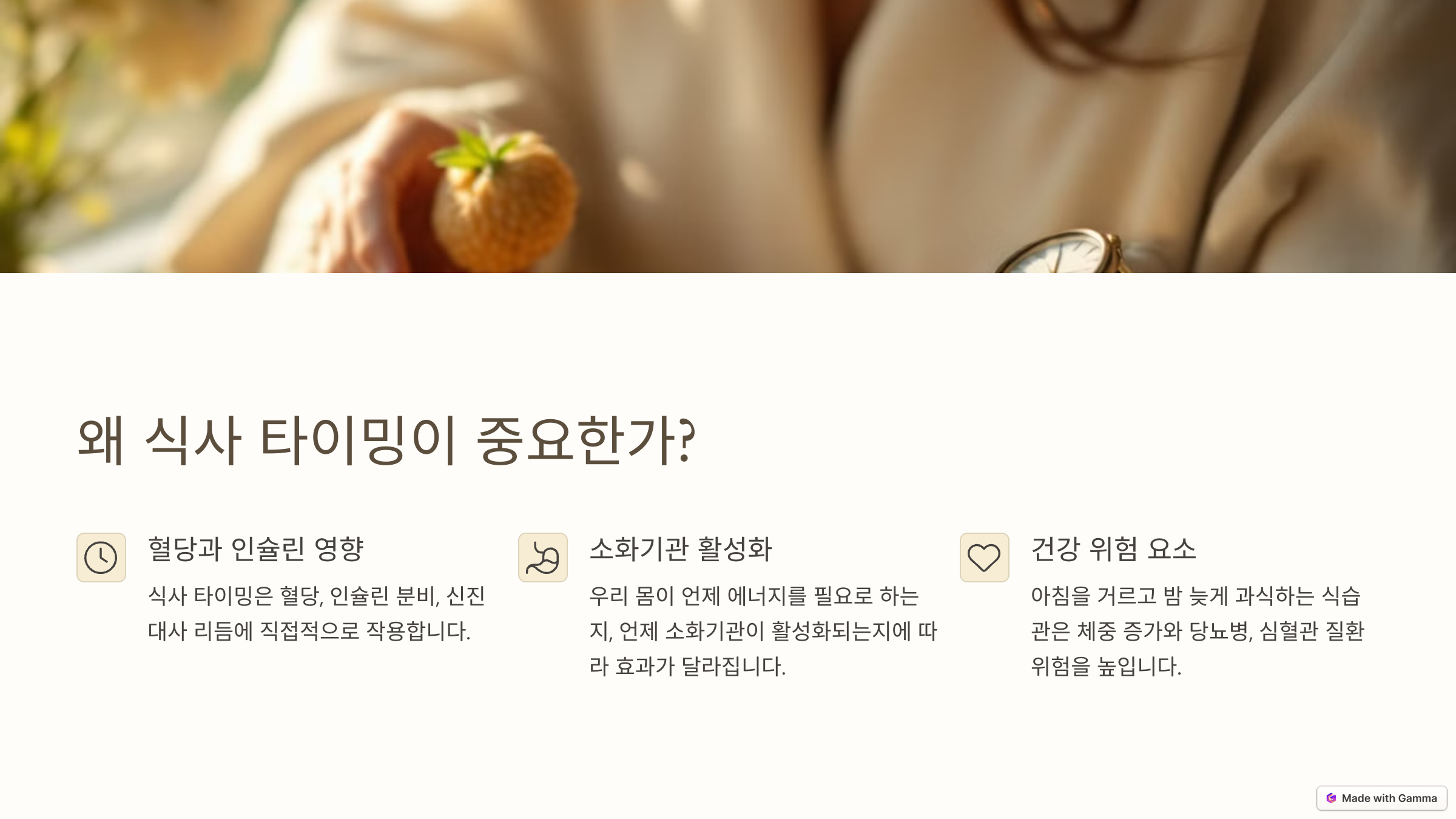 단순히 "얼마나 먹느냐"보다 "언제 먹느냐"가 우리 몸에 미치는 영향이 더 클 수 있다는 사실, 알고 계셨나요? 식사 타이밍은 혈당, 인슐린 분비, 신진대사 리듬에 직접적으로 작용합니다. 특히 아침을 거르고 밤 늦게 과식하는 식습관은 체중 증가뿐 아니라 당뇨병, 심혈관 질환의 위험도 높일 수 있어요. 우리가 하루 중 언제 에너지를 필요로 하는지, 언제 소화기관이 활성화되는지를 고려한다면, 같은 음식이라도 효과가 전혀 달라질 수 있답니다.