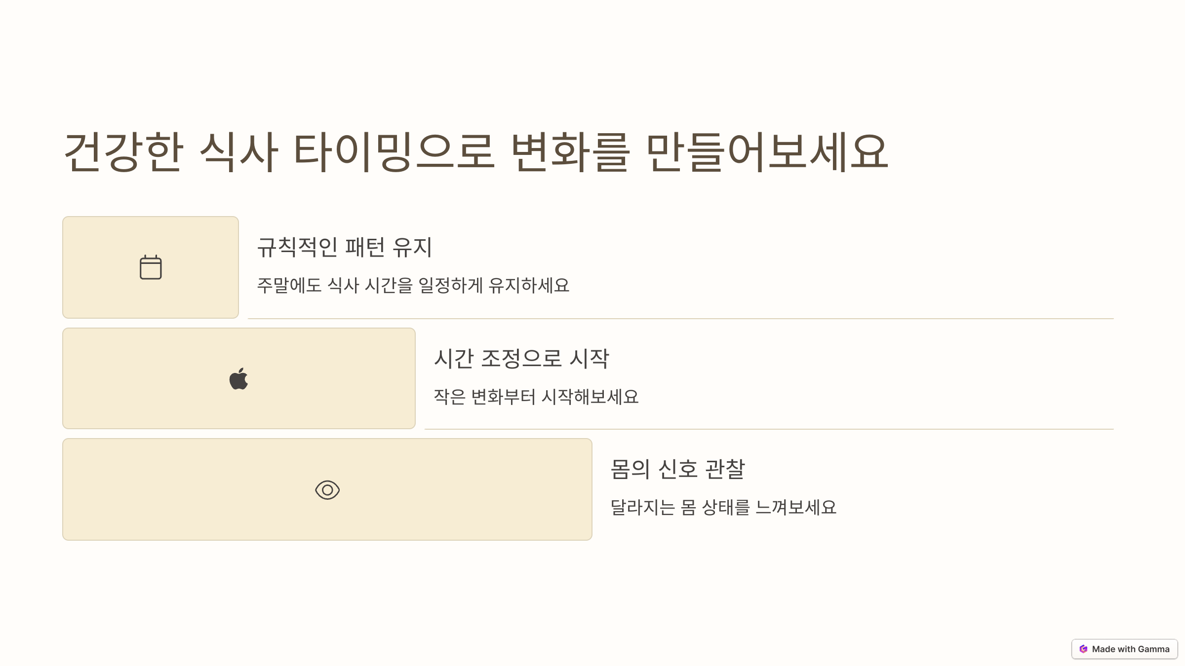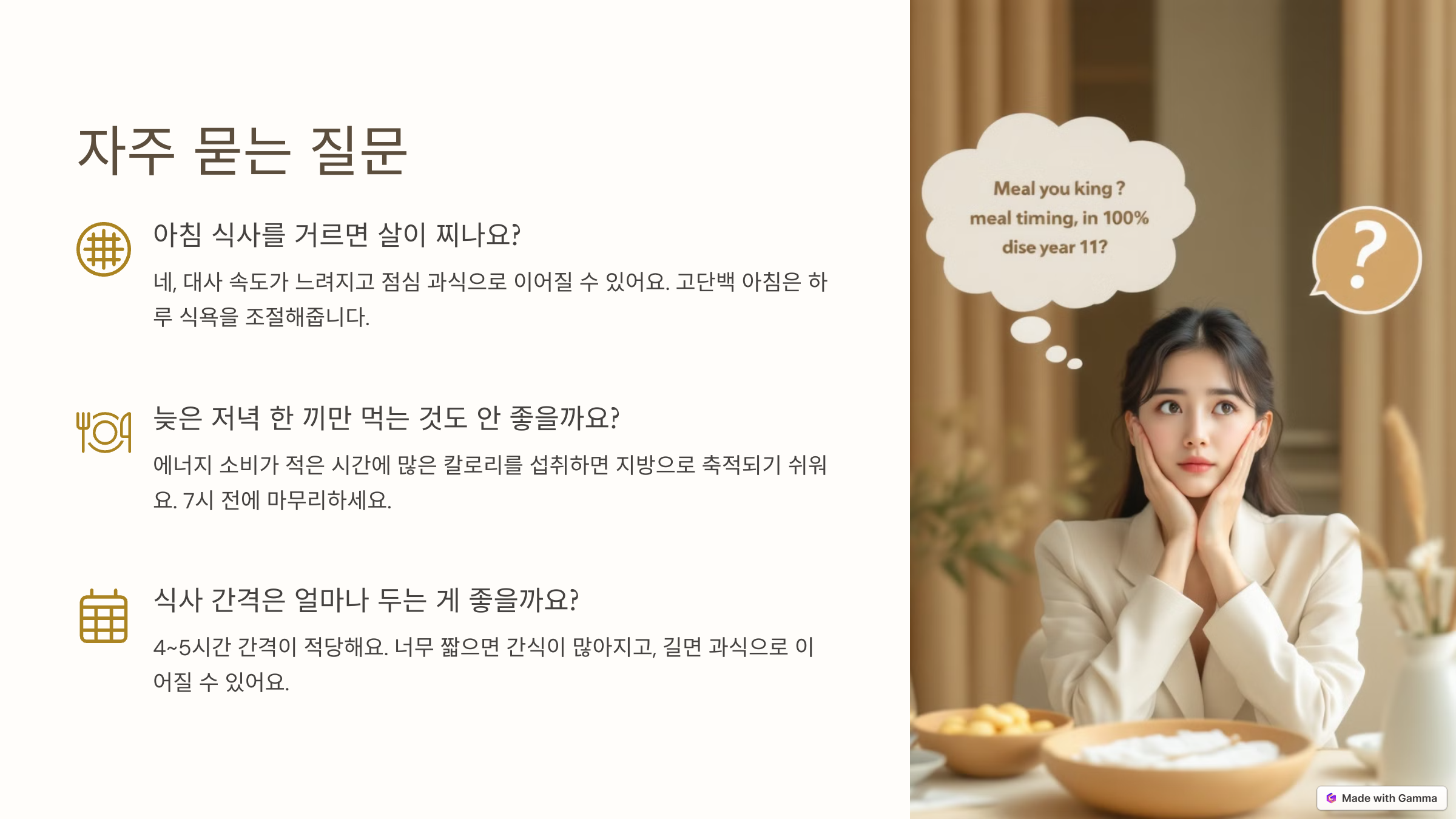 지금까지 식사 타이밍이 건강과 체중 조절에 얼마나 큰 영향을 미치는지 함께 알아봤어요. 저도 예전엔 그냥 배고플 때 먹으면 되는 거 아닌가 싶었는데요, 요즘은 시간까지 신경 써서 식사하려고 노력하고 있어요. 여러분도 오늘부터 식사 시간을 조금만 조정해보세요. 몸이 보내는 신호가 분명히 달라질 거예요. 혹시 실천해보시고 달라진 점이 있다면 댓글로 꼭 공유해주세요! 우리 함께 건강한 루틴 만들어가요 😊