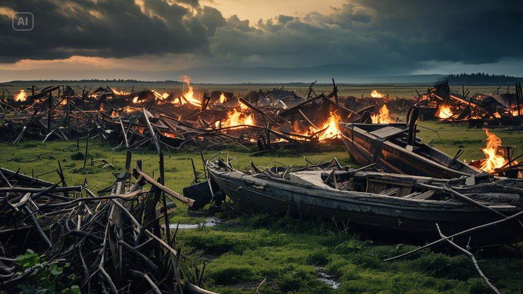 잿빛 하늘 아래, 세상은 숨을 멈춘 듯했다. 불과 몇 시간 전까지만 해도 아이들의 웃음소리와 어른들의 정겨운 대화가 오가던 마을은 온데간데없었다.