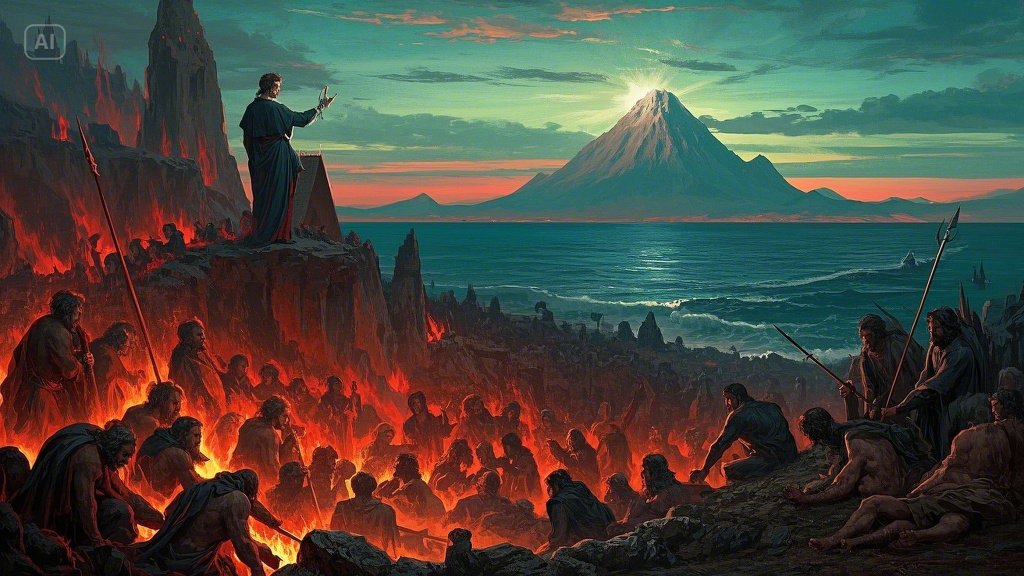 - 해설: 지옥의 문 위에 새겨진 이 섬뜩한 문구는 지옥의 영원한 절망과 신의 은총으로부터 완전히 단절된 상태를 극명하게 드러냅니다. 지옥의 본질을 압축적으로 보여주는 상징적인 구절입니다.