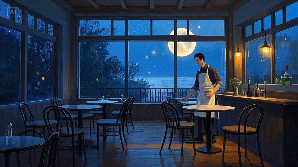 밤의 고요함 속에서 사람들이 서로에게 작은 등불이 되어주는 곳, 달빛처럼 서로의 마음을 비추고 머물다 가는, 그런 특별한 공간이었다. 그리고 그는 그 공간을 지키는 사람이라는 사실에 조용한 만족감을 느꼈다.