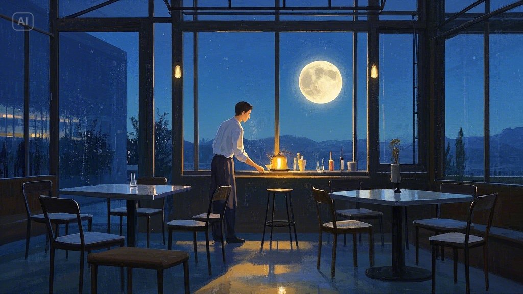 도시의 밤이 깊어갈수록 오히려 희미한 불빛을 밝히는 곳이 있었다. 간판도 눈에 띄지 않는 골목길 모퉁이, ‘달빛 머무는 곳’이라는 작은 나무 팻말이 전부인 카페였다.
