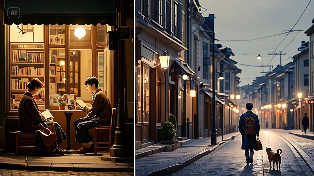 익숙한 듯 낯선 골목길을 걷던 민준의 발걸음이 어느 낡은 상점 앞에서 우뚝 멈췄다. ‘시간의 책방’. 처음 보는 간판이었다. 무심코 지나치려던 순간, 서점 창문에 붙어 있는 작은 그림 하나가 그의 시선을 강하게 붙잡았다.