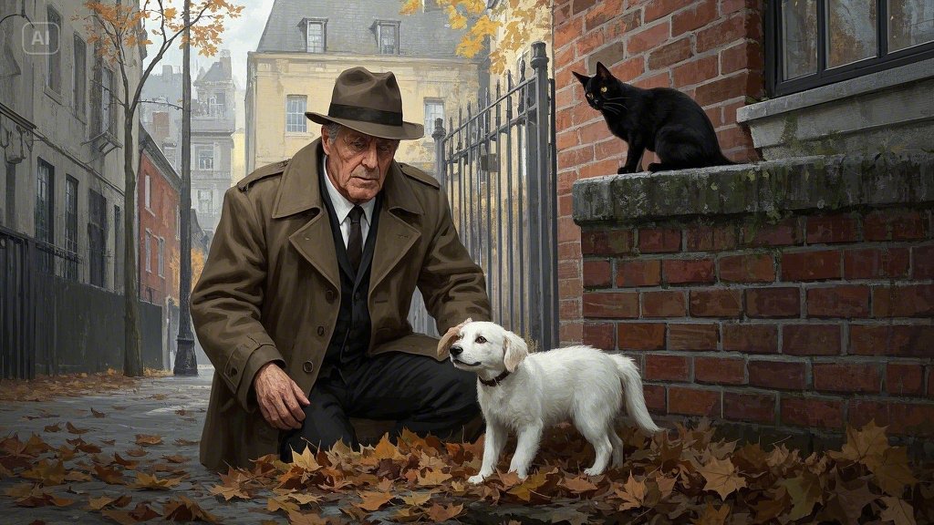 김 반장은 담벼락 쪽으로 다가갔다. 가까이 가 보니, 깜냥이는 담벼락 아래 쌓인 낙엽 더미를 앞발로 헤집으려 안간힘을 쓰고 있었다. 김 반장은 직감적으로 뭔가 있음을 느꼈다. 형사의 본능이랄까, 아니면 그저 고양이에 대한 호기심이랄까. 그는 조심스럽게 낙엽을 치워보았다. 그러자 그 안에서 작고 하얀 강아지 한 마리가 웅크린 채 벌벌 떨고 있는 것이 아닌가.