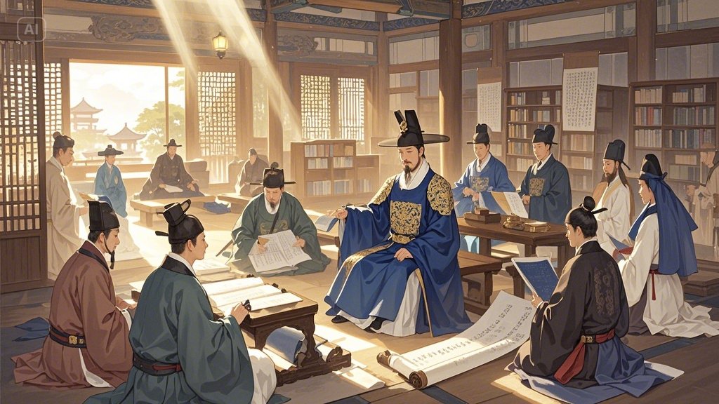 - "학문이란 실제 쓰임(實用)에 있지 않으면 빈 말에 불과하다." (《일득록》 학문 편): 정조는 지식 그 자체보다 그것이 현실 문제 해결과 백성의 삶 개선에 어떻게 기여하는지를 중시했습니다. 이는 지행합일(知行合一)과 실사구시(實事求是)를 강조하는 그의 실학 정신을 보여줍니다.