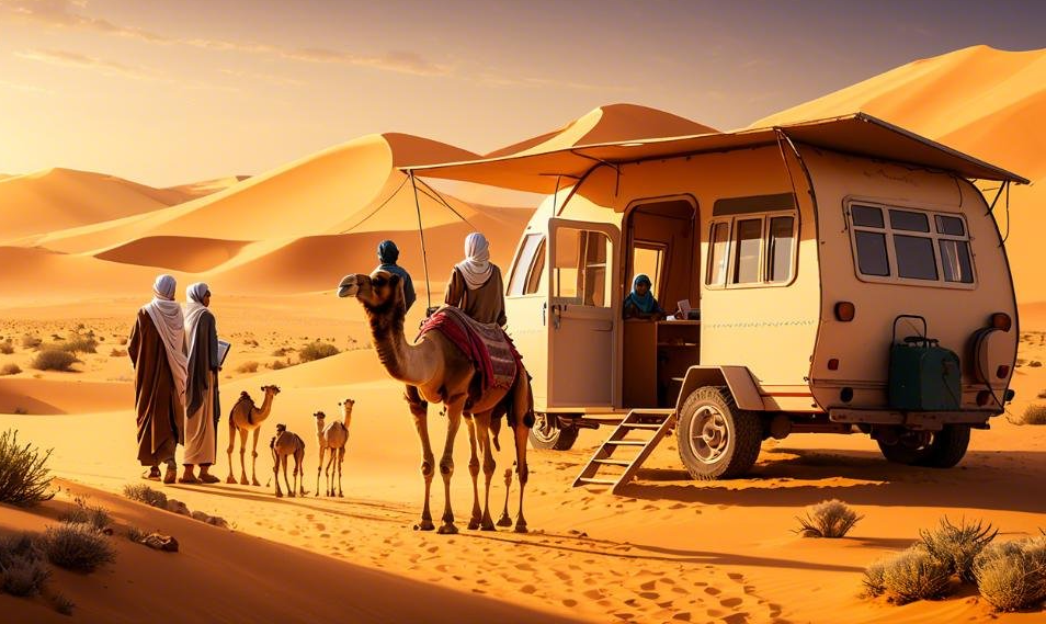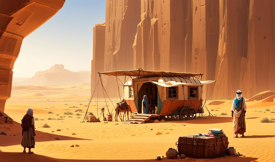 자이드는 말없이 시원한 물 한 잔을 건네고, 카라반 안쪽 그늘진 자리를 내주었다. 카라반 내부는 생각보다 아늑했다. 벽면 가득 낡고 손때 묻은 책들이 빽빽하게 꽂혀 있었고, 오래된 종이 냄새와 은은한 차 향기가 뒤섞여 묘한 안정감을 주었다.