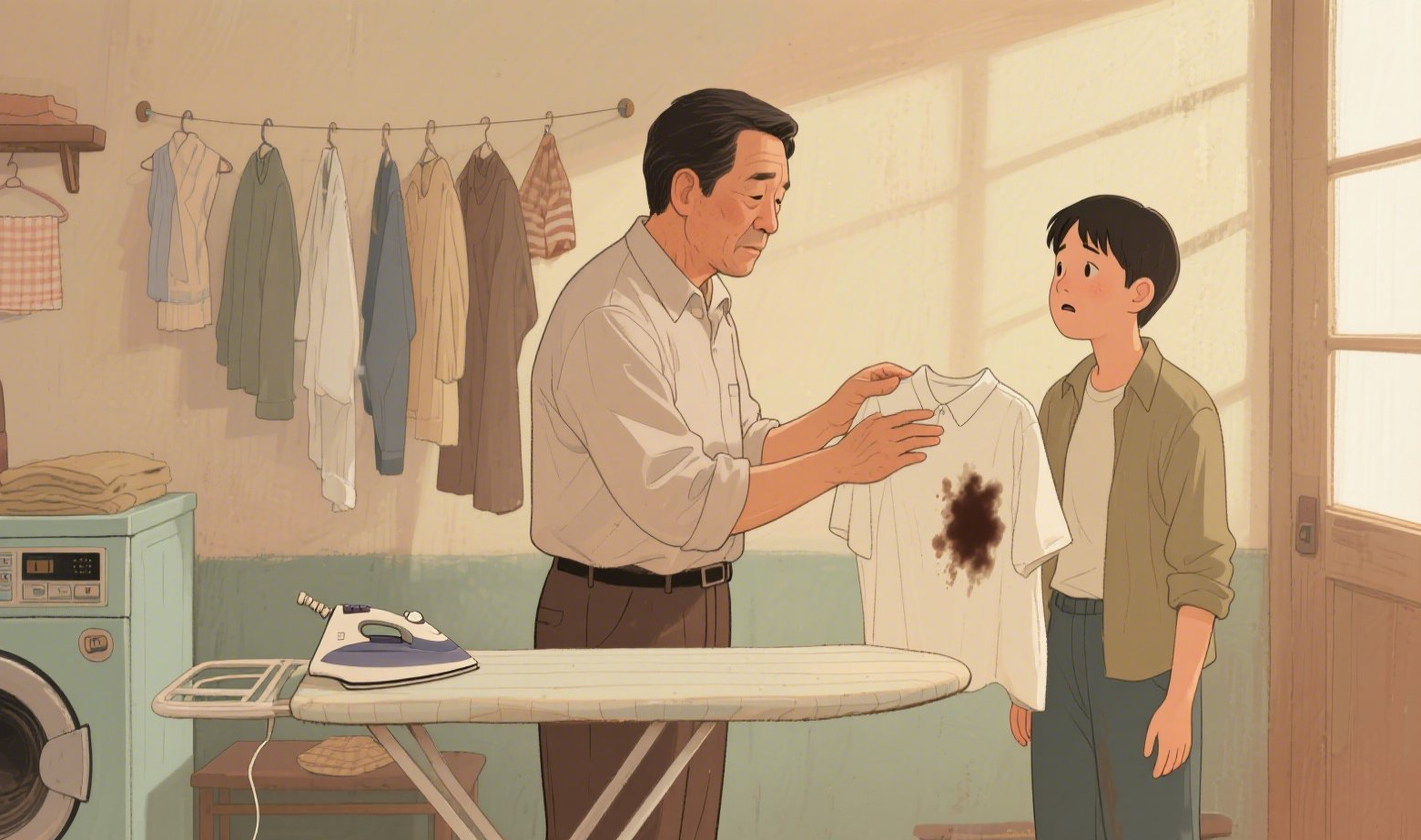 “살다 보면 다 그런 날이 있는 거지. 넘어져 봐야 다시 일어설 힘도 생기는 거고. 너무 자책하지 말아요. 이 셔츠, 아주 빳빳하게 다려서 새 기운 불어넣어 줄 테니, 다음번엔 꼭 좋은 소식 있을 거요.”