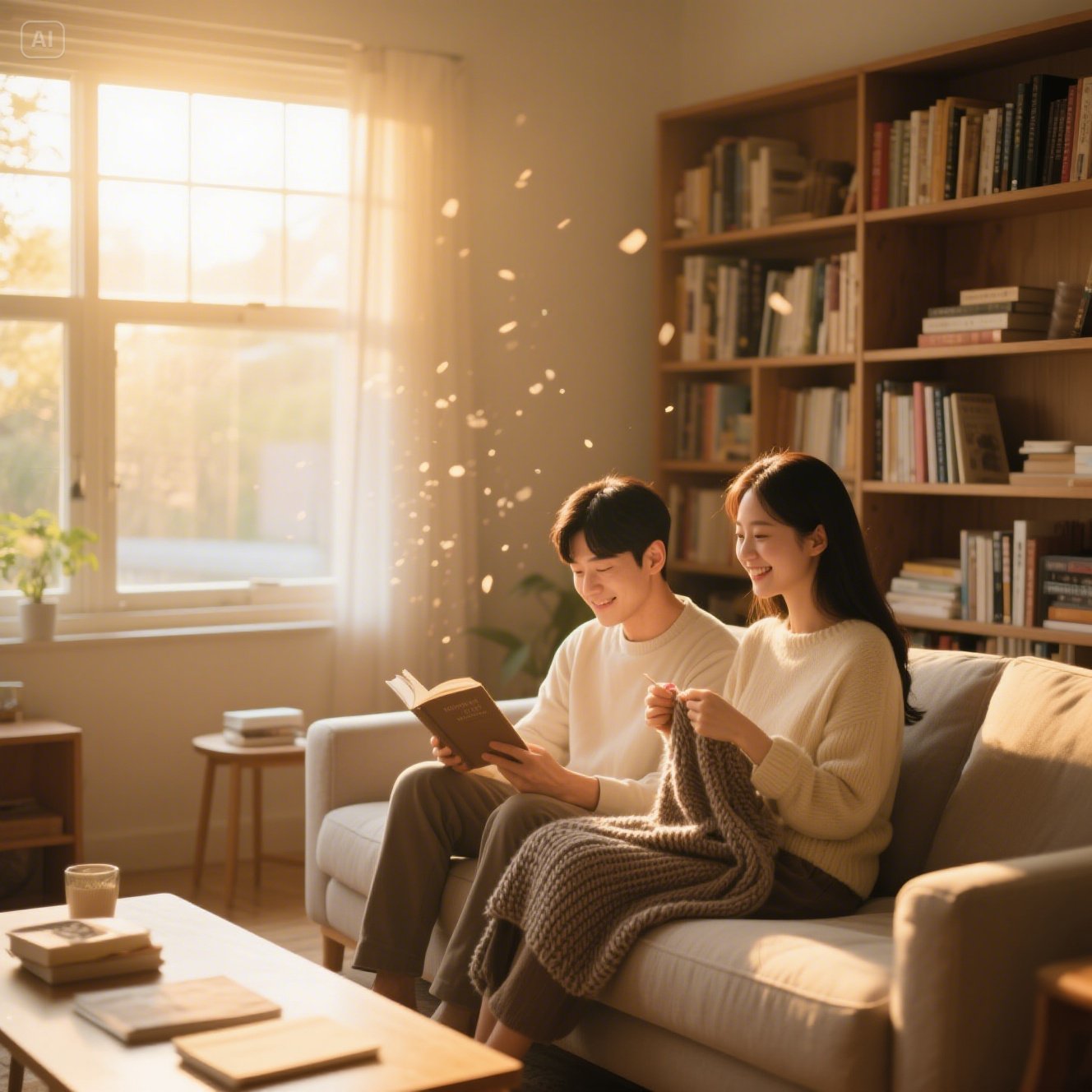 창밖으로 나른한 햇살이 길게 늘어지던 오후 네 시. 우리 집 작은 거실에는 언제나처럼 은은한 홍차 향기가 감돌았다. 지수는 창가 흔들의자에 앉아 뜨개질을 하고 있었고, 나는 맞은편 소파에 기대앉아 오래된 소설책 페이지를 넘기고 있었다. 특별할 것 없는 일상이었지만, 그 어떤 화려한 순간보다 충만하고 평화로운 시간이었다.