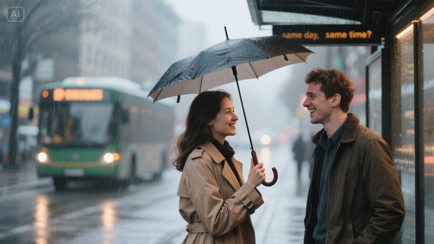 이야기는 자연스럽게 이어졌다. 수현은 작은 출판사에서 삽화를 그린다고 했고, 지훈은 판교에 있는 IT 회사에 다닌다고 했다. 서로의 일, 좋아하는 영화, 최근에 읽은 책. 마치 오래전부터 알고 지낸 친구처럼, 두 사람은 낯선 도시의 한복판, 한 뼘 남짓한 우산 아래서 서로의 온기를 나누고 있었다.
