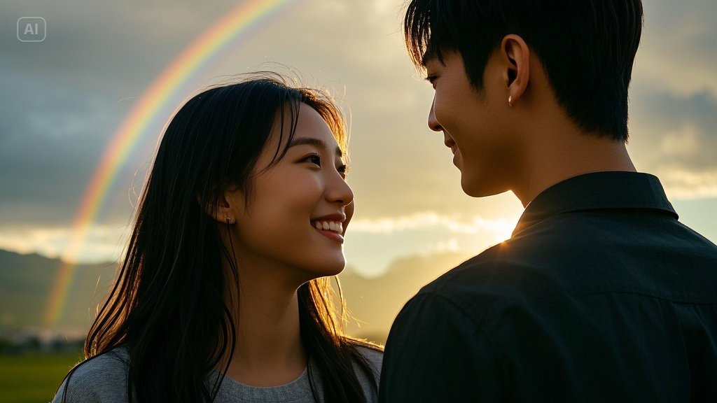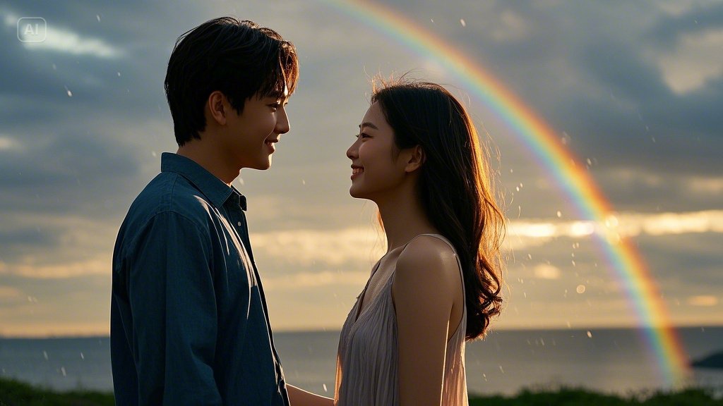 수아가 아이처럼 손가락으로 하늘을 가리키며 소리쳤다. 지훈은 무지개보다 수아의 환한 얼굴을 바라보고 있었다. 젖은 머리카락이 뺨에 달라붙어 있었지만, 그 어느 때보다 아름다워 보였다.