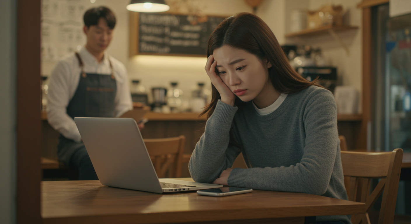 그 주말, 지유는 약속이라도 한 듯 동네 카페 구석 자리에 앉아 노트북을 켰다. 창밖은 눈부시게 화창한데, 화면 속 보고서는 끝이 보이지 않았다. 그때였다.