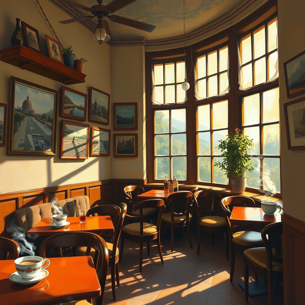 할아버지는 문턱을 넘으며 주변을 둘러보았다. 카페 내부는 따뜻한 나무 향과 커피 향으로 가득 차 있었다. 벽에는 오래된 사진들과 익숙한 풍경화들이 걸려 있었다. 하지만 그 모든 것이 낯설게 느껴졌다.