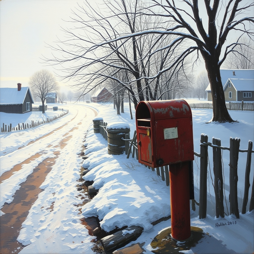 겨울 끝자락의 바람이 스산하게 불던 날, 작은 마을의 오래된 우체통 하나가 조용히 사람들의 기억 속에서 사라질 준비를 하고 있었다. 우체통은 붉은색이었지만, 세월이 흐르며 군데군데 녹이 슬고 빛이 바래 있었다.
