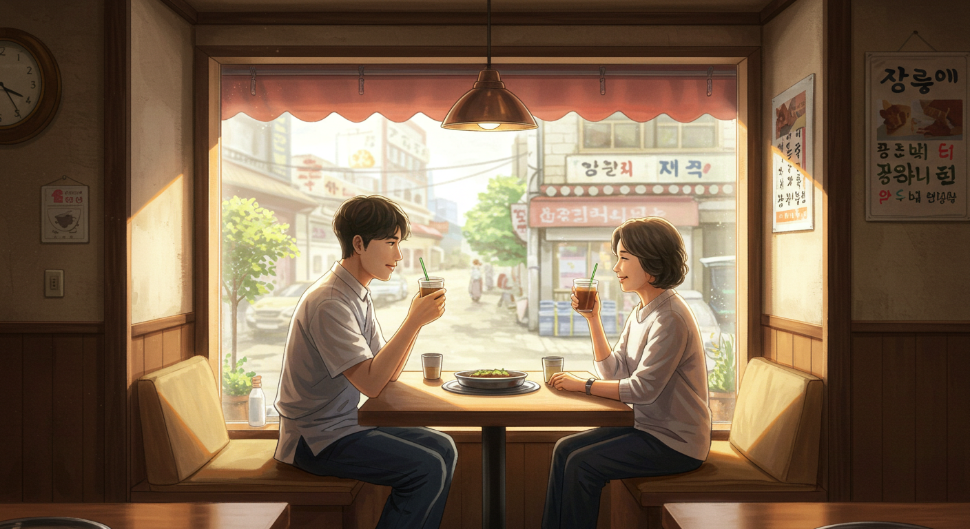 며칠 후, 은혜가 다시 식당을 찾았을 때, 창가 자리는 더 이상 비어 있지 않았다. 수현은 환한 미소로 은혜를 맞이하며 그 자리에 앉혔다.