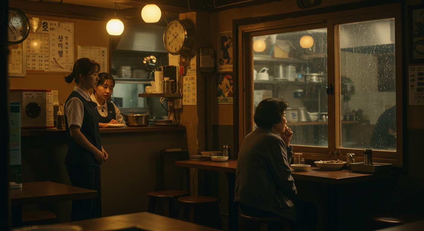 수현은 계산대 옆에 서서 그 모습을 지켜보았다. 여인은 밥 한 그릇을 깨끗이 비우고 자리에서 일어섰다.