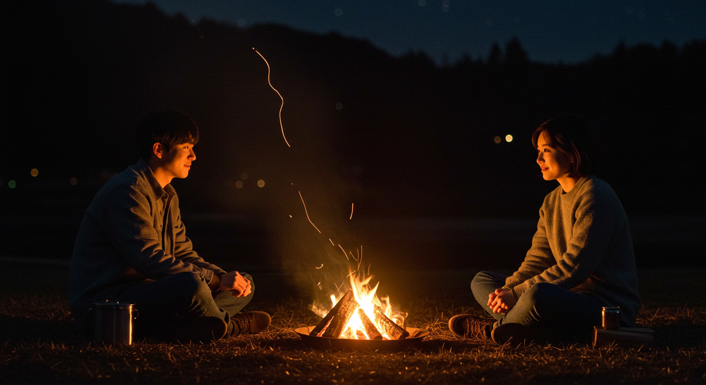 지우는 다행히 별 탈 없이 돌아왔고, 캠프는 예정대로 마지막 밤을 맞이했다. 활활 타오르는 캠프파이어 주위로 아이들의 웃음소리가 가득했다. 민재와 다인은 나란히 앉아 아이들이 재롱을 부리는 모습을 흐뭇하게 바라보았다. 모든 소란이 잦아들고 아이들이 잠든 깊은 밤, 둘은 모닥불 옆에 남아 잔잔히 타오르는 불꽃을 응시했다.