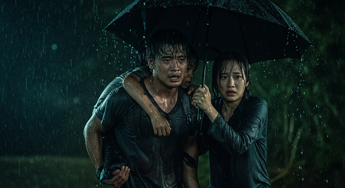 작은 바위 아래, 비에 젖어 덜덜 떨고 있는 지우가 있었다. 민재는 지우를 와락 끌어안았다. 안도감과 함께 뜨거운 눈물이 뺨을 타고 흘러내렸다. 다인 역시 눈시울이 붉어진 채, 그 모습을 지켜보고 있었다.