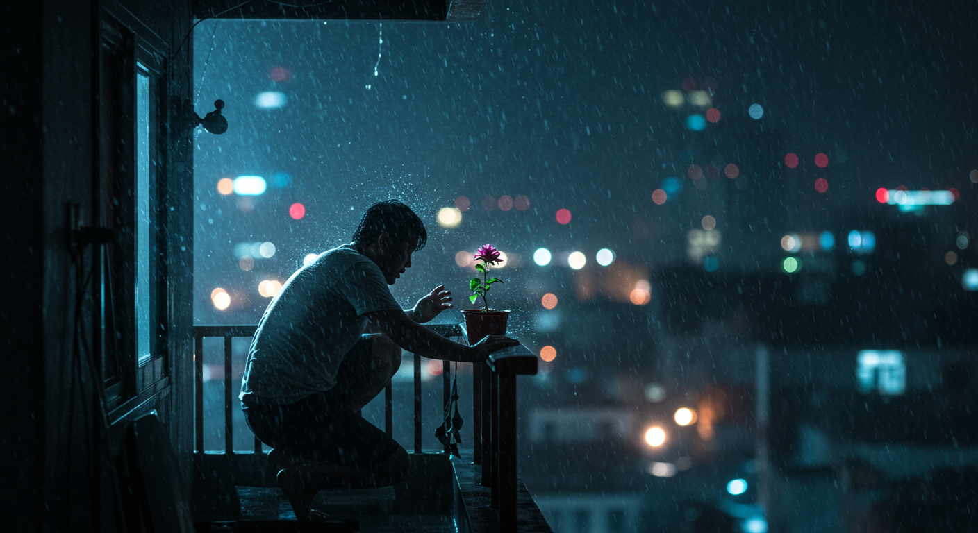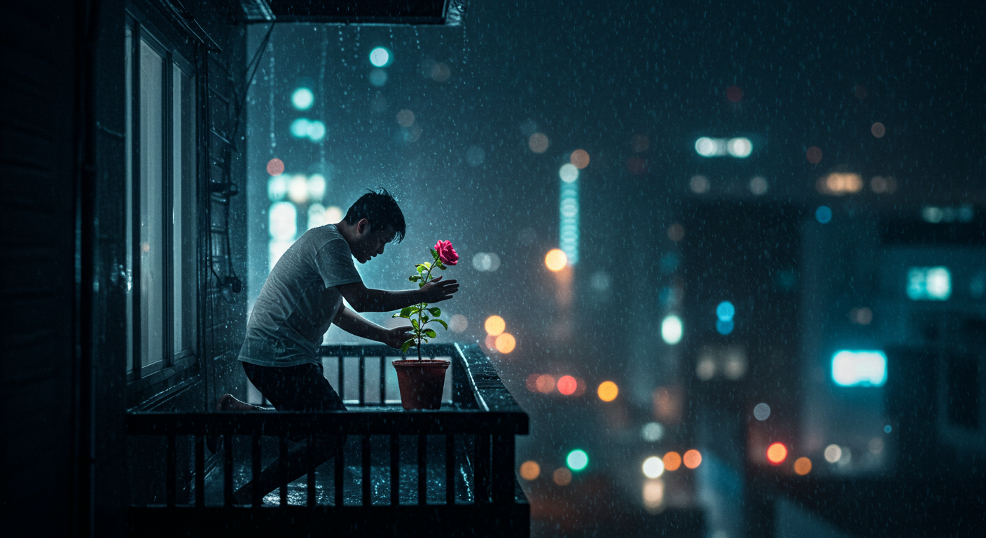 그 모습을 보는 순간, 소희의 심장이 쿵, 하고 내려앉았다. 저 남자에게 저 꽃은 단순한 식물이 아니구나. 지켜주고 싶은, 소중한 무언가이구나. 그의 젖은 등에서, 소희는 세상 가장 절박하고 따뜻한 마음을 보았다.