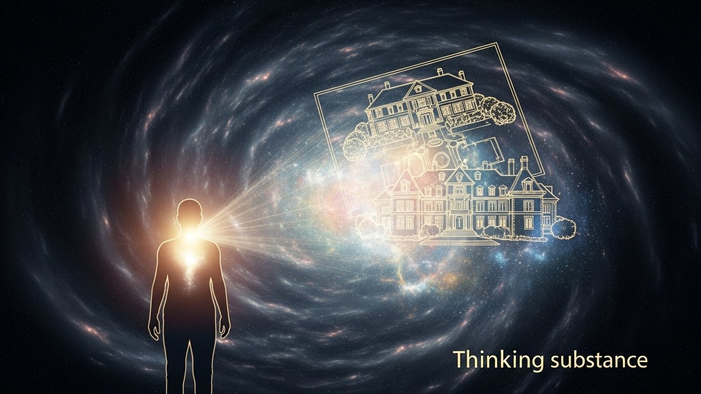 인간은 이 ‘생각하는 실체’에 자신의 생각을 각인시킴으로써 원하는 것을 현실로 만들어낼 수 있는 창조적 중심이다.