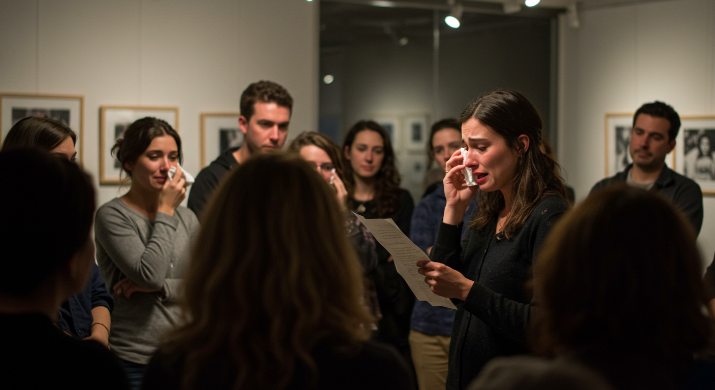 갤러리 안은 조용했다. 그러나 이내 누군가가 박수를 치기 시작했고, 점점 더 많은 사람들이 따뜻한 환호와 격려를 보내왔다. 사람들의 온기가 그녀를 감쌌다. 그녀는 더 이상 혼자가 아니었다.