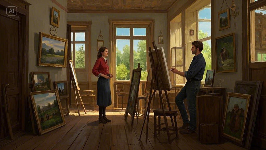 그녀는 고개를 들어 그를 바라보았다. 키가 크고, 깊은 눈빛을 가진 남자였다. 그는 앞치마를 두른 채 붓을 들고 있었다.