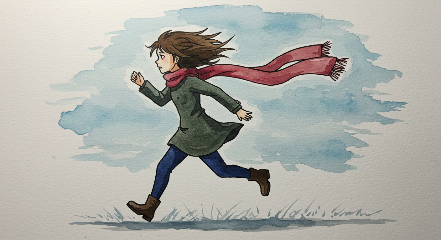 바람은 그녀를 감싸고 있었지만, 어째서인지 그녀는 바람을 거스르며 달리고 있었다.