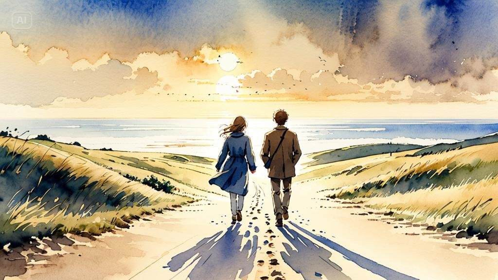 윤호와 소연은 바다 앞에서 마지막으로 바람을 느꼈다.