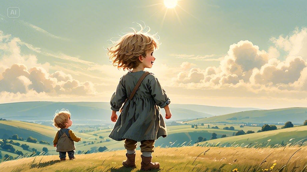 한 아이가 언덕 위에서 바람을 맞으며 말했다.