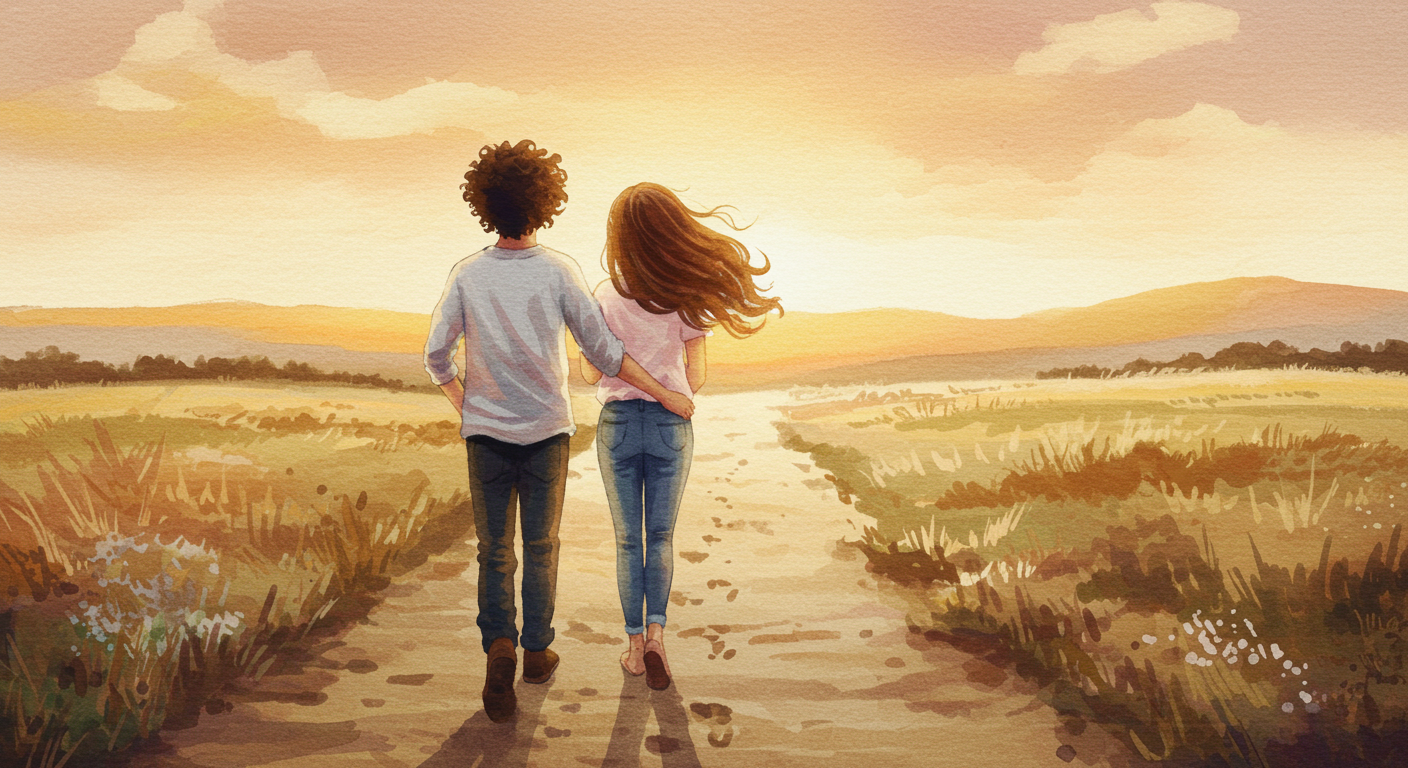소연과 윤호는 소년과 함께 오래된 길을 걸었다.